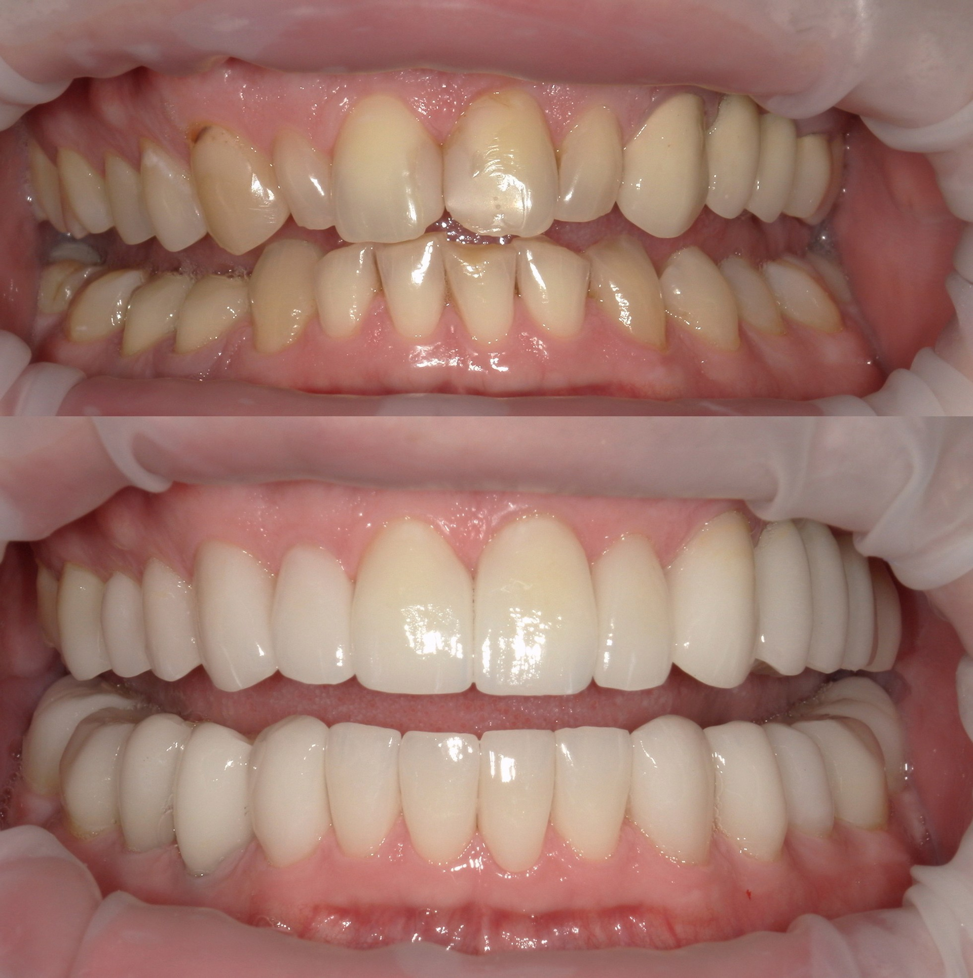 Протезирование 2-х челюстей(импланты, виниры, коронки). Цвет Bleach 1
